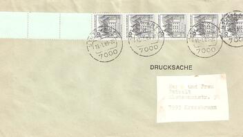Drucksache (bis 20g) frankiert mit 5* 10 Pf (Mi-Nr 913 A II Ldr).