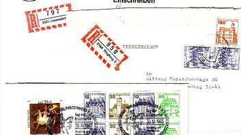 In der Folge will ich einige Belege zeigen, die mit Freimarken der Serie Burgen und Schlösser freigemacht worden sind.