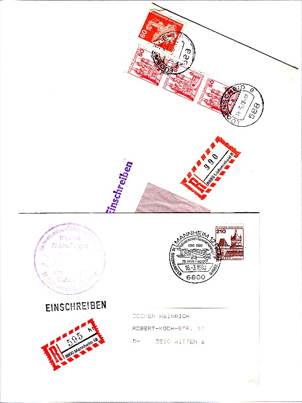 In der Folge will ich einige Belege zeigen, die mit Freimarken der Serie Burgen und Schlösser freigemacht worden sind.