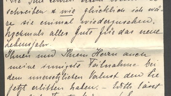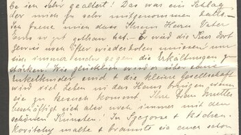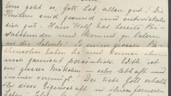 Uns geht es, Gott Lob, allen gut! Die Kinder sind Gesund und entwickeln sich gut. Hans Wolf hat bereits Privatstunden und kommt zu Ostern in die Schule! So einen grossen Pathensohn haben Sie und kennen ihn noch garnicht persönlich. Edith ist ein grosses Mädchen - sehr lebhaft und immer vergnügt! Der liebe Gott erhalte ihr diese Eigenschaft in ihrem ferneren Leben! Solche Menschen haben viel mehr von ihrem Leben - als solche die alles schwer nehmen. -