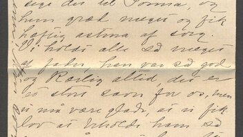 Ich habe die Schule aufgegeben und bin jetzt nur bei Jonna, Wir habe auch immer ein Krankenschwester die bei Jonna nachts sitzt, so dass wir schlafen können und nicht ??? ???. Jonna ist so melancholisch weil sie nur im Bett liegt und nie rauskommt. Hier ist es so schön, Wald und Strand. Wir baden jeden Tag. Jonna will gern dass wir dir einige Bücher zuschicken, wenn wir Kjøbenhavn erreichen, will ich den Buchandler aufsuchen. Ich will ihn fragen, und er schickt einige. Wir haben auch Sorge weil wirSeite 4
