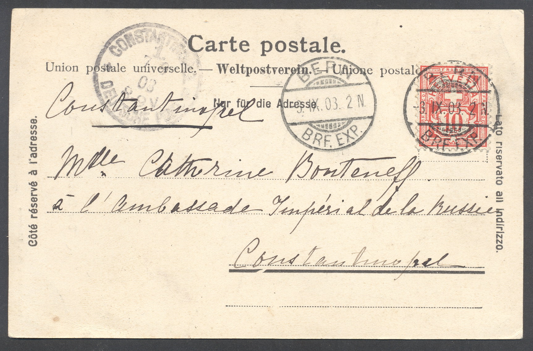 Die Karte wurde dann, mit einem Hotelstempel versehen, an die russische Botschaft in Konstantinopel nachgeschickt. -