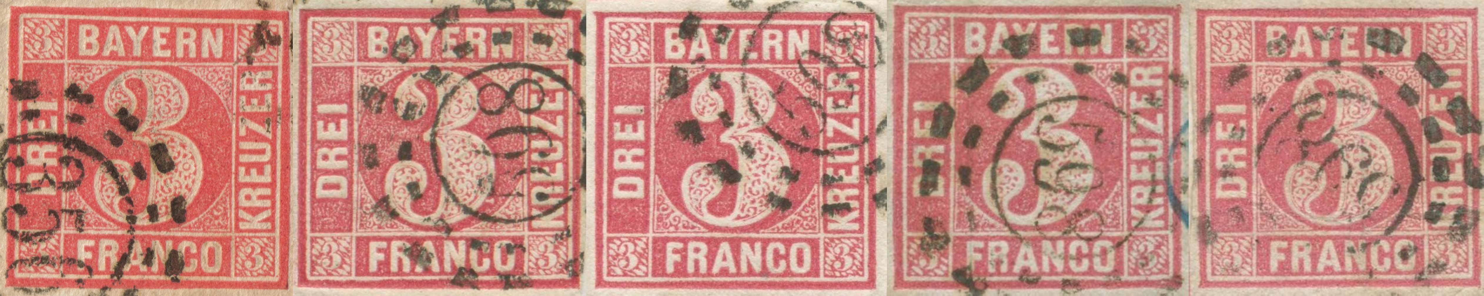 Es wird aber sicher sehr schwer sein, schon ein paar Dutzend Briefe beider Varianten zusammen zu tragen, obwohl es doch (mit) die häufigsten Bayernmarken überhaupt waren.