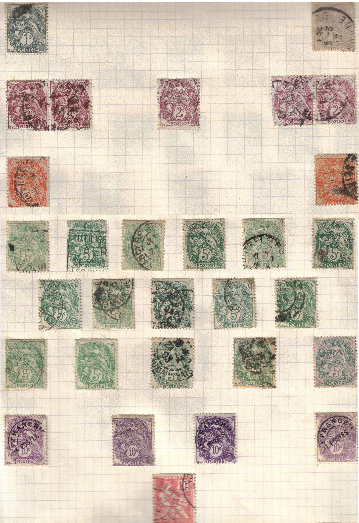 die Marke auf der ersten Seite, die unterschrieben ist, ist eine Steuermarke. Der Napoleon ist schlecht geschnitten, ansonsten aber auch nicht sehr wertvoll (10 Euro im Michel maximal). Die Marken auf der zweiten Seite sind Massenware. Die auf der dritten Seite sind alle schlecht gezähnt und haben Stockflecken.