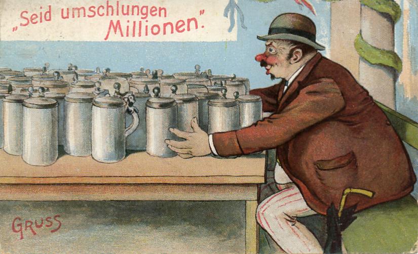 Und wer den Hals nicht voll bekommt, der freut sich dann wie der Herr auf der Ansichtskarte mit der roten Nase von 1930 - da sag ich denn dann auch nur Prost ![]()