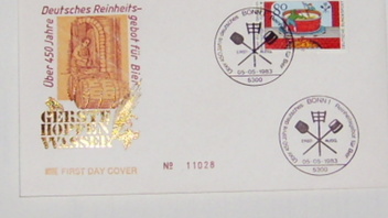 Während der Zusatzstempel für die weltberühmten Biere der Stadt München wirbt, mahnt die Sondermarke aus dem Jahre 1982 gegen Alkohol und damit auch gegen Biere im Straßenverkehr.