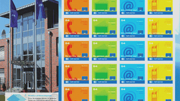 Wir suchen jetzt eine europäische Briefmarke, die einen Wegweiser zeigt, der auf eine Entfernung von stolzen 13.500 km bis zur Hauptstadt des Landes hinweist, das diese Briefmarke ausgegeben hat.