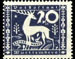 Da fallen mir doch ganz spontan die bunten Platzhirsche von Württemberg Michel-Nr. 144-149 von 1920 ein. Auch geschnittene Exemplare soll es davon geben: