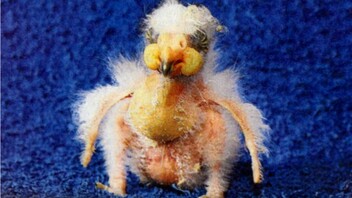 Dieses Vögelchen, das erst 2 Tage alt ist und noch ziemlich zerzaust aussieht, wird später mal ein besonders schlauer Vogel. Den suchen wir auf einer Marke des Landes, in dem er ausschließlich vorkommt.