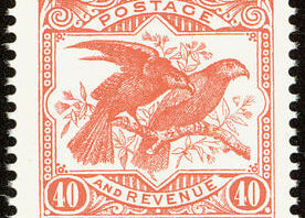 Richtig, Markenfritze, das ist ein Kea. Hier noch eine Marke aus seinem Heimatland, das ihn zusammen mit einem Kaka, einem verwandten Papagei, zeigt.