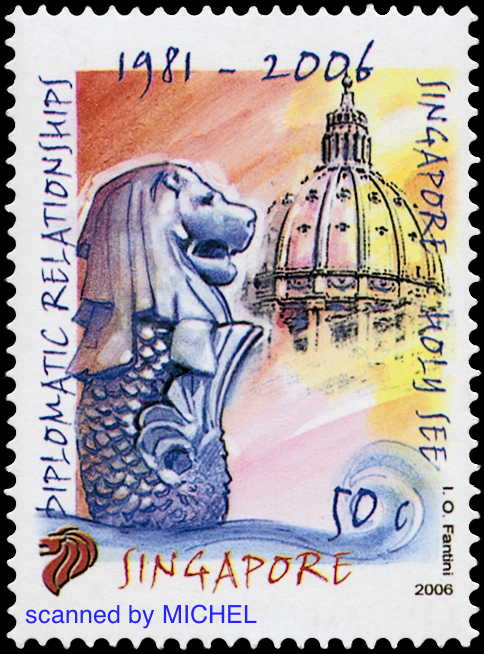 Das Wahrzeichen ist der "Merlion", eine Mischung aus Löwe und Fisch. Die Bezeichnung ist ein Kunstwort, das sich aus den Worten Mermaid (Meerjungfrau) und Lion (Löwe) zusammensetzt.