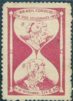 Gesucht wird eine Briefmarke mit einer Sanduhr, in denen sich 2 Köpfe befinden.