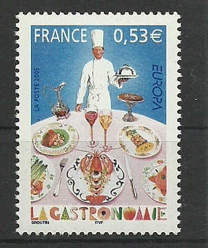 Zum Thema passend kam in Frankreich eine Briefmarke heraus, die ein von der französischen Gastronomie hübsch arrangiertes Bufett zeigt.
