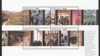 Gesucht wird eine Briefmarke, auf dem 3 Männer sehr schändlich mit dem guten Tropfen umgehen.