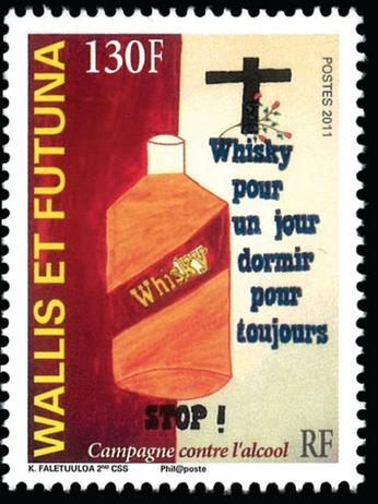 es ist schon erstaunlich wie das Thema Alkoholmissbrauch es in Wallis und Futuna auf eine Marke geschafft hat. Erst mal sind von den 12.000 Nasen, die da leben, 50% Analphabeten,