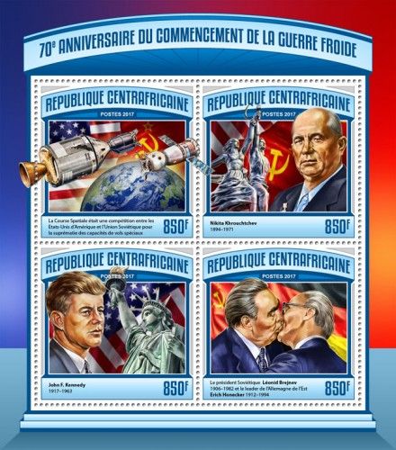 Richtig, Robertoli, das war am 7.10.1979 Erich Honecker mit Leonid Breschnew zum 30 Geburtstag der DDR. Diese Szene wurde nur auf einem Briefmarken-Block der Zentralafrikanischen Republik verewigt, zusammen mit 3 anderen Marken.