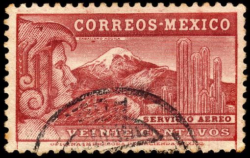 Der linke ist ein Adlermensch und kein Botenläufer, und der Berg ist der Popocatepetl, aber die gesuchte Marke ist katalogmäßig nicht weit entfernt davon. Aber jetzt!
