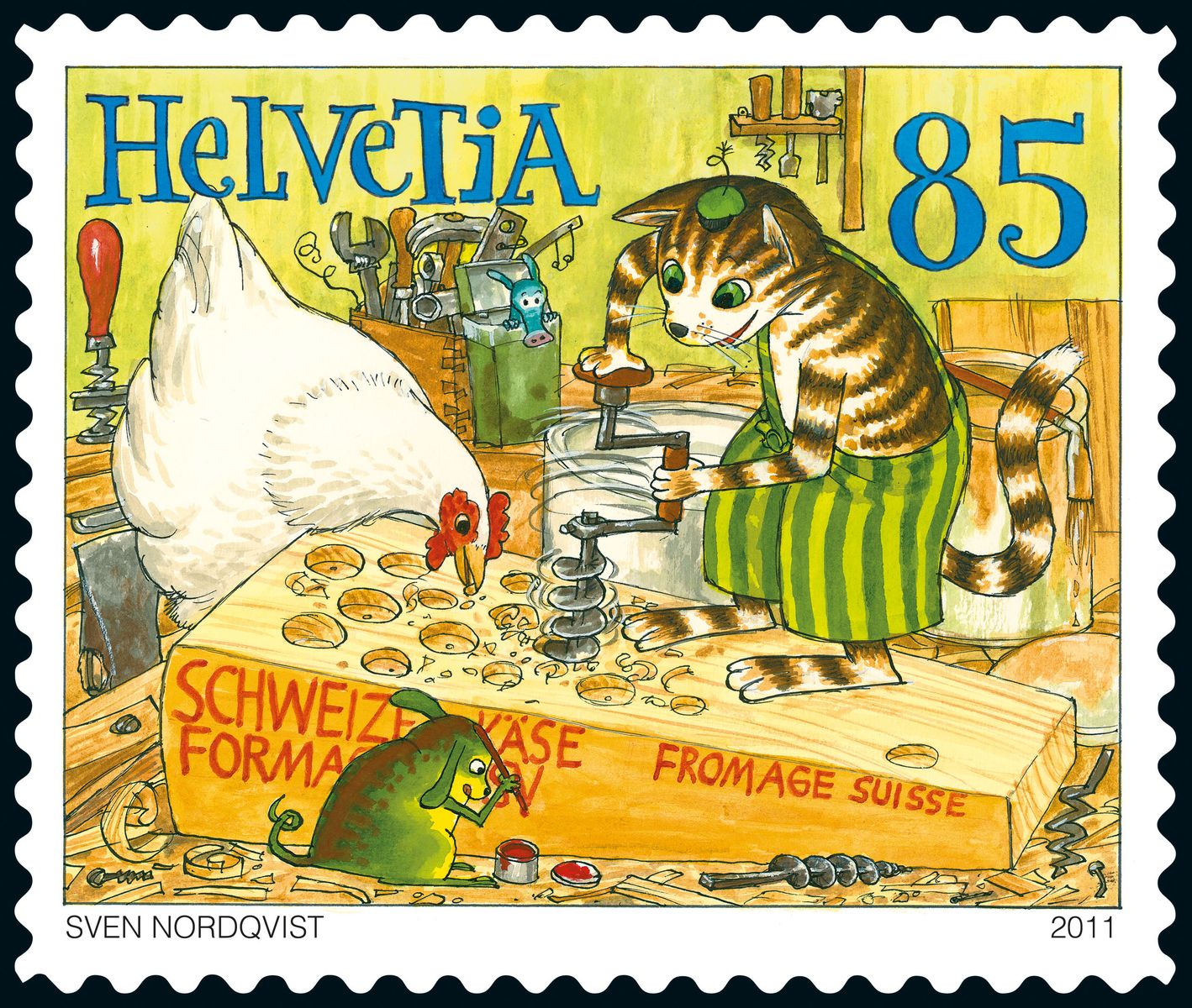 Ich biete mal Kater Findus an. Der kommt zwar nicht aus "Heidiland" sondern aus Ikealand, aber die Briefmarke, auf der er die Löcher in den Käse bohrt, ist aus der Schweiz ;)