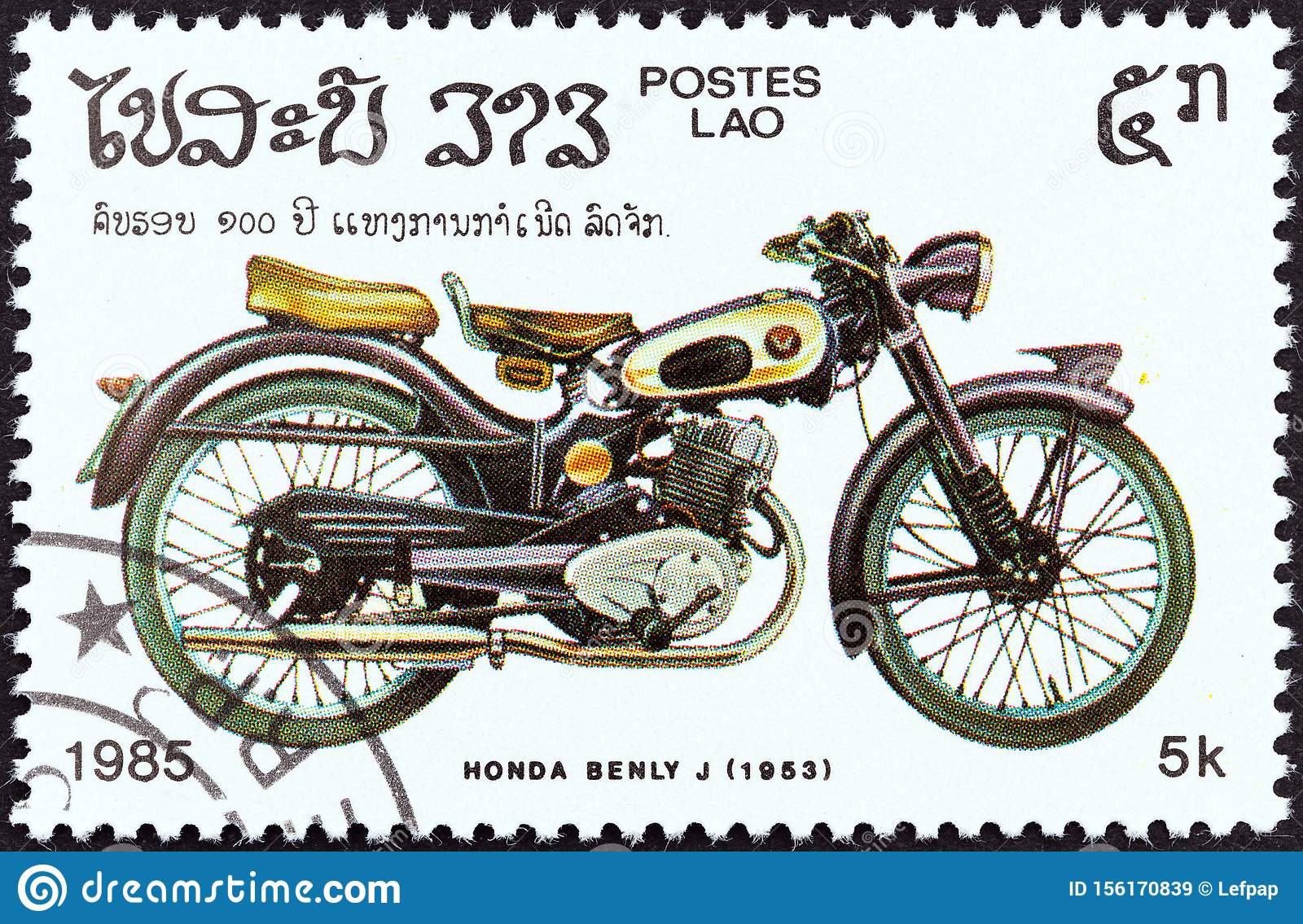 Die Honda Benly, hier auf einer Marke aus Laos: