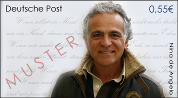 Dieser seltsame Entwurf einer neuen Briefmarke mit Nino de Angelo hat sich als Aprilscherz herausgestellt. Da der Sänger noch lebt und auch keine Ambitionen auf das Amt des Bundespräsidenten hat, kann es keine offizielle Briefmarke von ihm geben, es sei denn eine personalisierte von Deutschland oder Österreich: