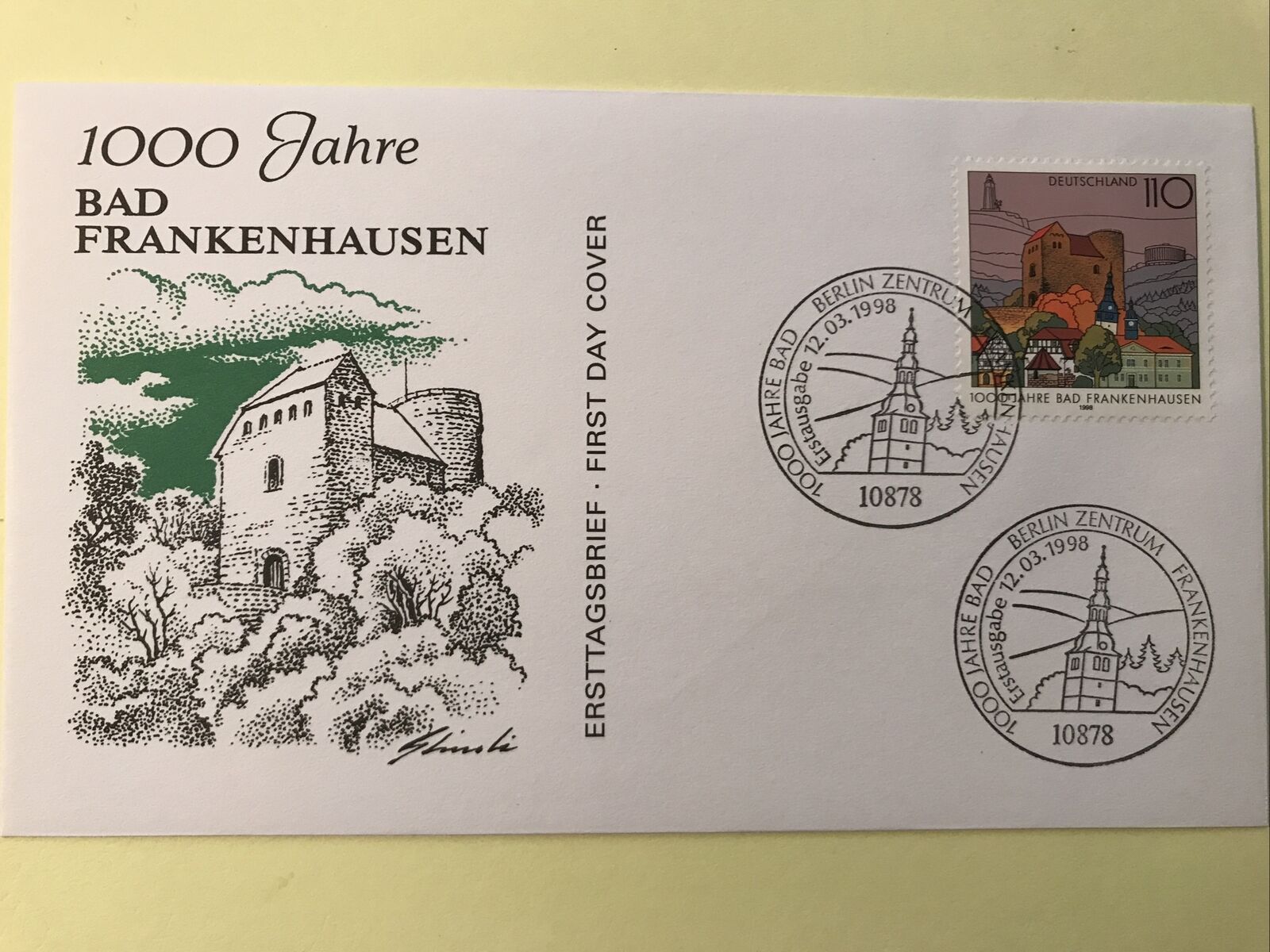 Auf diesen uralten Artikel von 2010 stieß ich heute im Internet. Der Kirchturm hier soll stärker geneigt sein als der schiefe Turm von Pisa. Der Entwurf wurde damals wohl deshalb nicht angenommen, weil es bereits 1998 eine Sondermarke von Bad Frankenhausen gab, auf der der schiefe Kirchturm deutlich zu sehen ist: