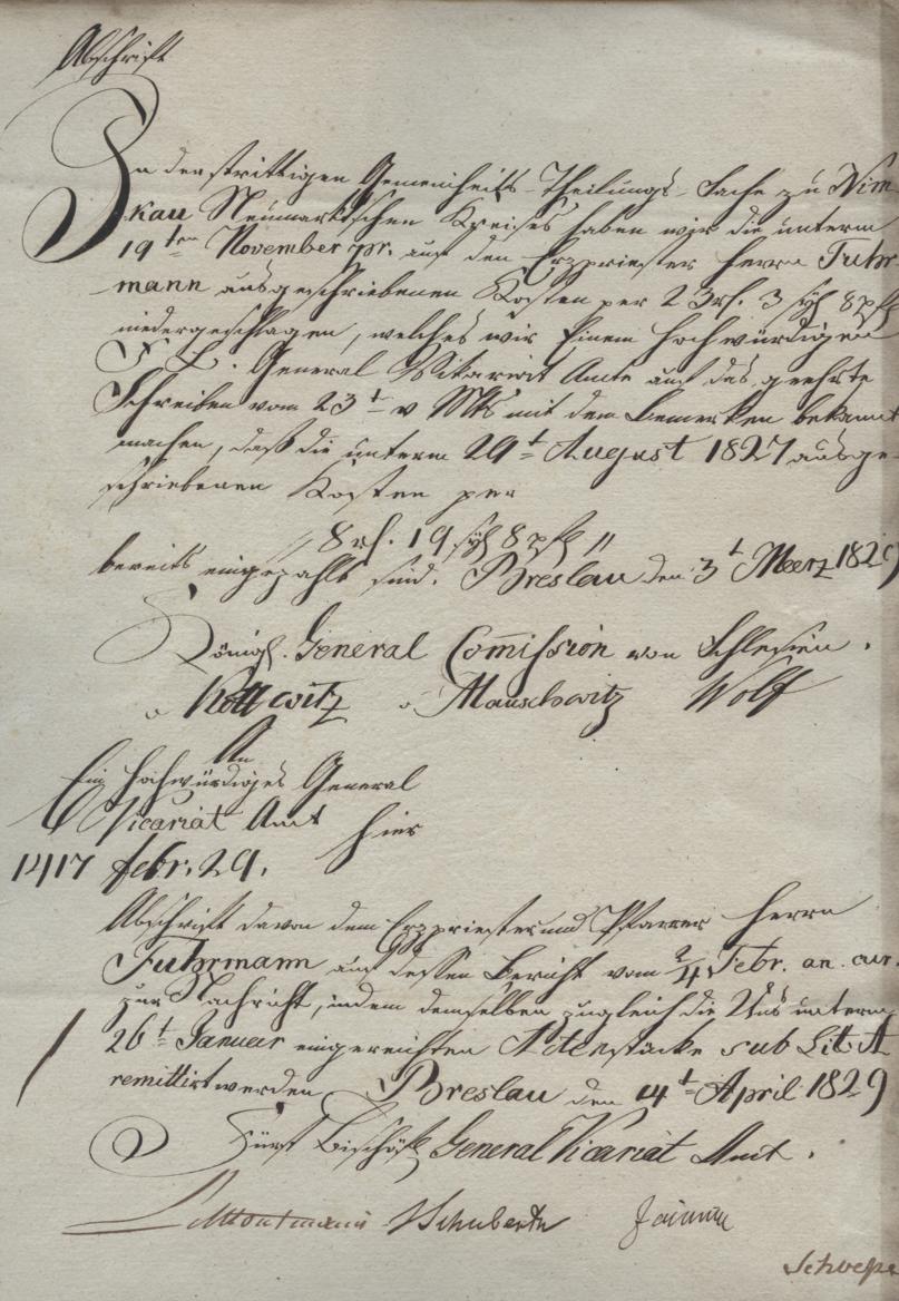hier ist der nächste Brief mit einer Korrespondenz einer königlichen General Kommission und dem General Vicariat der Brief kam aus Breslau 1829.