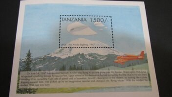 Tansania, ein ostafrikanischer Staat, hatte wohl noch nie Besuch von einem UFO. Deshalb informierte sich die Post dieses Landes über die weltweiten UFO-Sichtungen und verausgabte 1999 nicht weniger als 12 Marken in 2 Kleinbogen und 2 Blocks mit detailgetreuen UFOS. Nur die genauen Typenbezeichnungen (wie bei den Autos) und die Herkunftsplaneten fehlen auf den Marken. Katalogisiert unter der Michel-Nr. 3557-3568 12 Werte in 2 Kleinbögen, und Block 476-477 mit je einer Marke.
