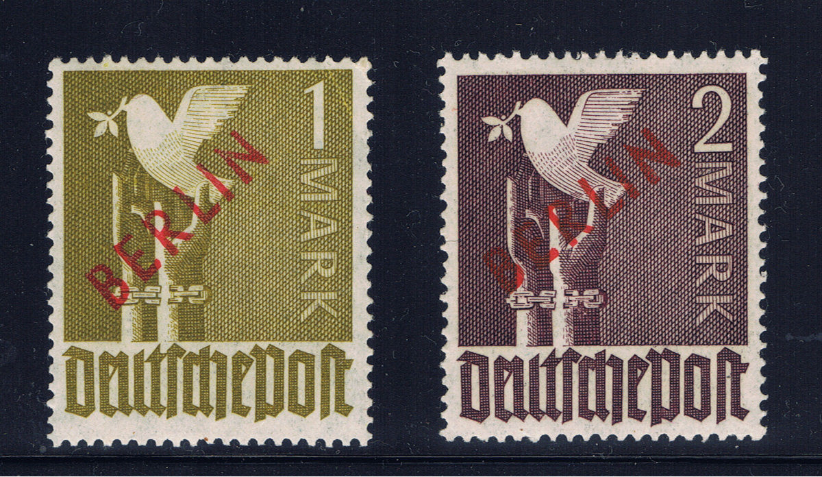 Der rote Überdruck auf den Marken des Kontrollrates erfolgte im Buchdruck.
