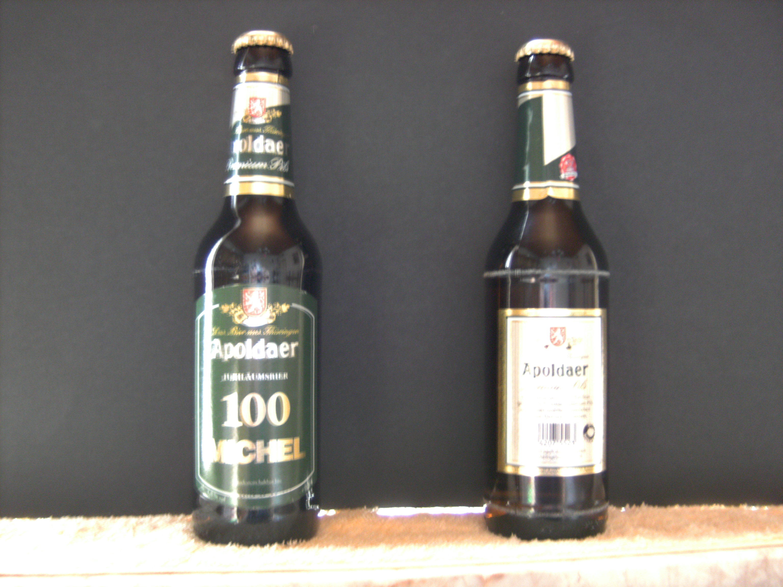 Hier noch ein Bild von Vorder- und Rückseite der Bierflaschen, von denen ich 2 Stück ergattern konnte: