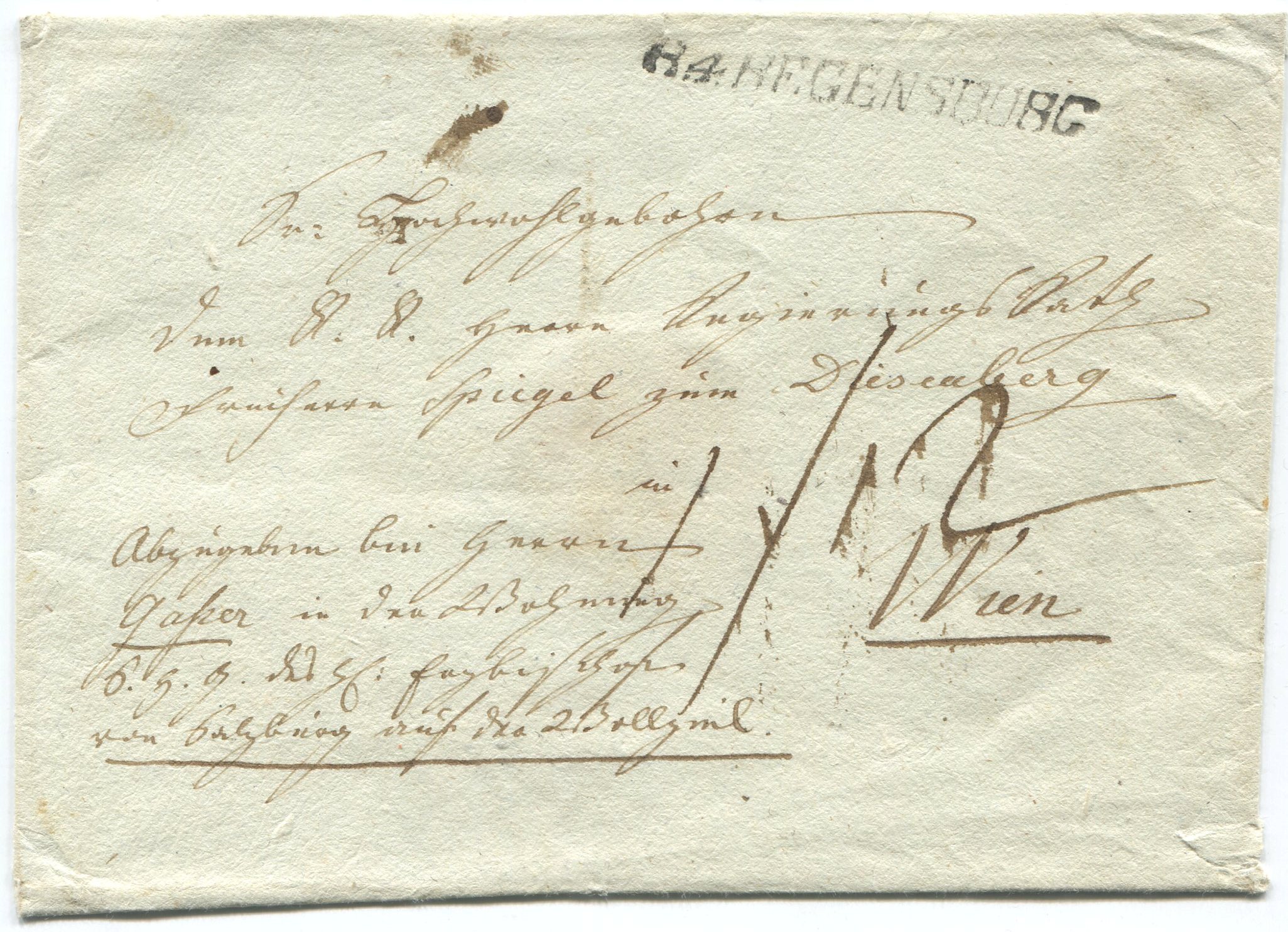 Unfrankierter Brief aus Regensburg (Fürstentum Regensburg)