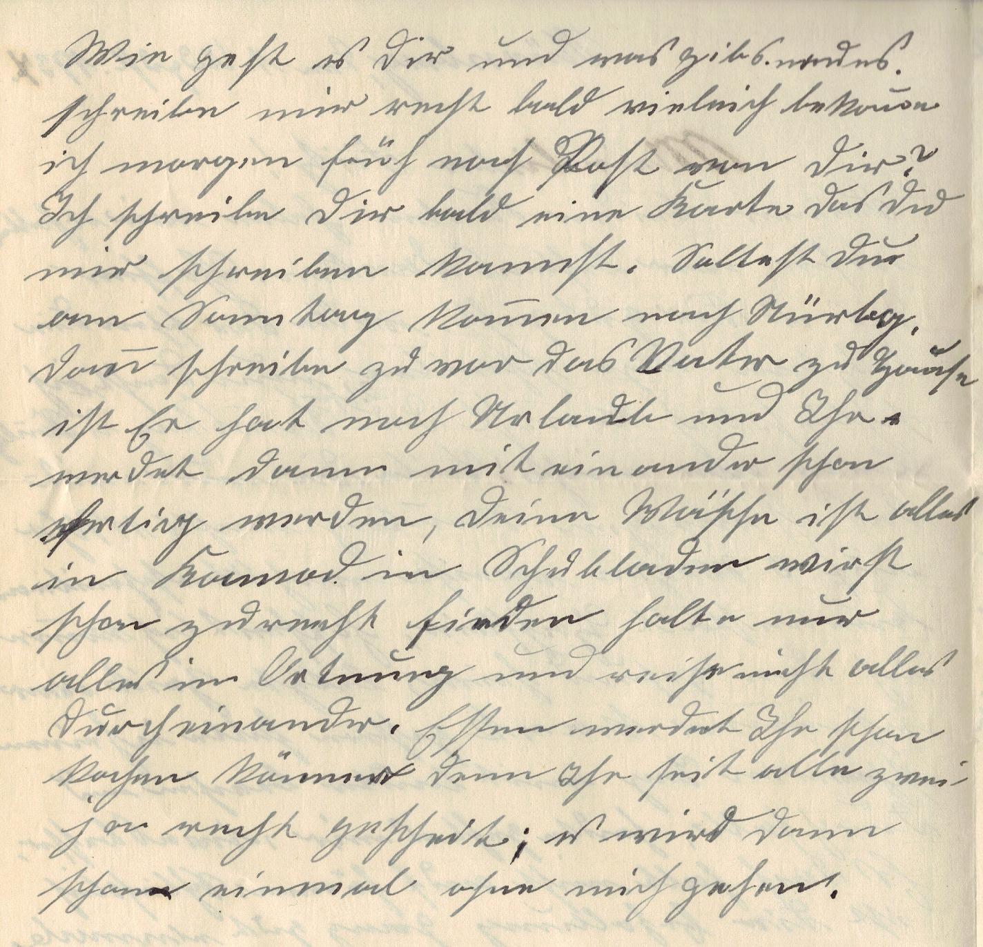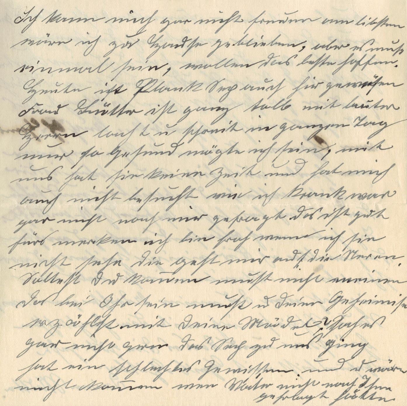 obwohl ich nicht den ganzen Text durchgelesen habe, denke ich, daß er leider nichts Spektakuläres enthält (also nichts, was mich dazu veranlassen würde, den Text Wort für Wort zu entziffern und zu transkribieren). Es handelt sich um den Brief von einer Mutter an ihren Sohn Fritz und es geht im Wesentlichen um Familiäres (Gesundheit, Verwandtschaft, Korrespondenz).