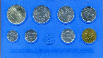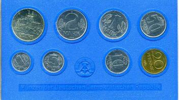 DDR: KMS 1979-1986, 1988, 1990, Verkehrswesen, T. Müntzer, 750 Jahre Berlin, E. Thälmann, Potsdam, 700 Jahre Münzprägung Berlin 1237-1987, Minisätze: Erzträger, Gelehrte, Schmelzen, Schmieden, Strecken.