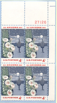 am 14.2.1962 gabe die US-Post die erste Arizona-Marke heraus.