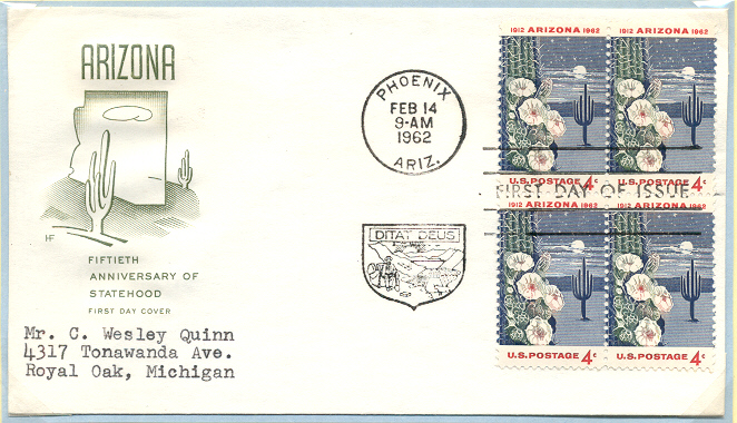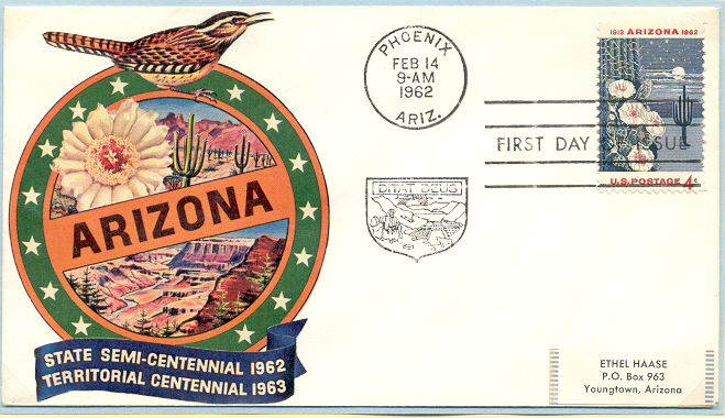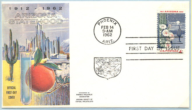 am 14.2.1962 gabe die US-Post die erste Arizona-Marke heraus.