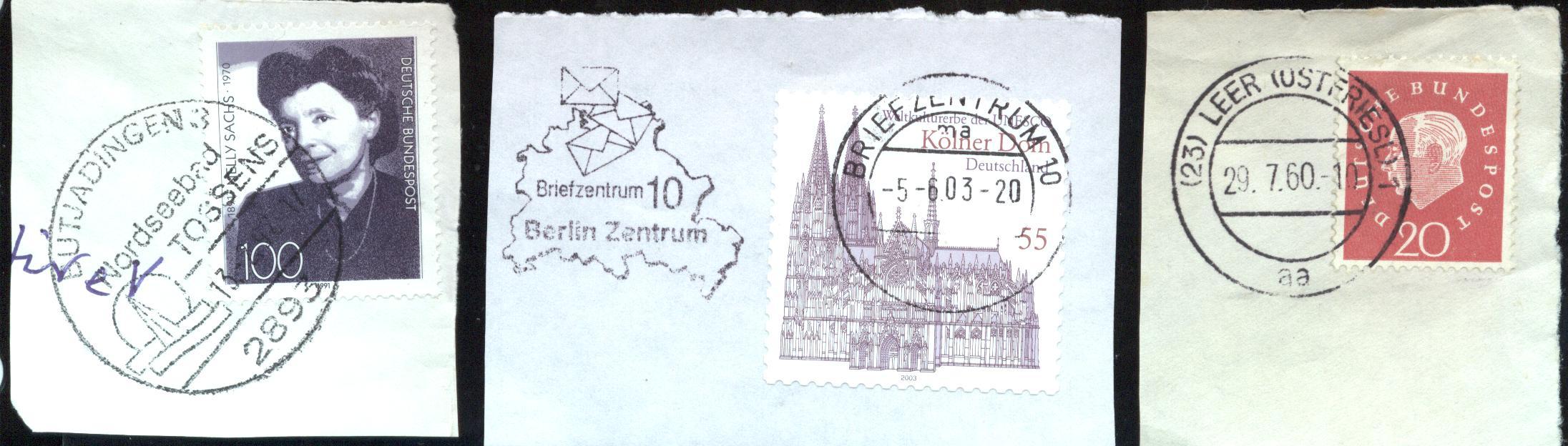( wenn sie auber und lesbar abgeschlagen wurden ) nichts ausschneiden. Wenn ja, dann immer ein Briefstück mit dem kopletten lesbaren Stempel ( siehe Bild 1 ), da gibt es immer Stempelsammler, die Dir die gleiche Marke ( oder mehr :D ) gerne schon abgelöst im Tausch geben. ;)