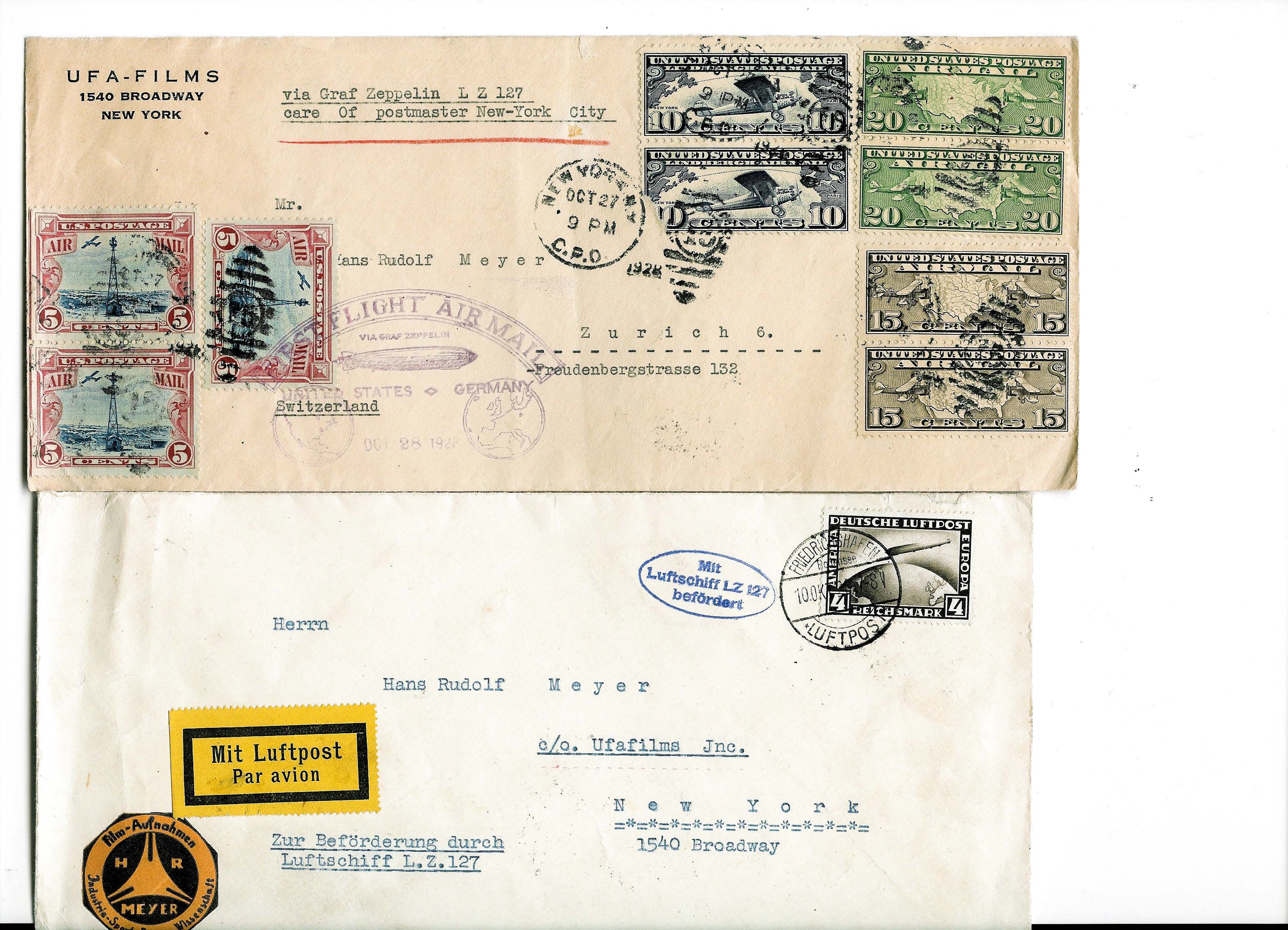 Du zeigst uns zwei Briefe von der ersten Nordamerikafahrt des Luftschiffs „Graf Zeppelin“ – Werksnummer LZ127 -, die vom 11. Oktober bis zum 1. November 1928 stattfand.