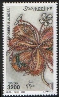 Der kleinste Wert von 200 Sh. So. (Somalia-Schilling) stellt eine recht stilisierte Dionaea muscipula (in den USA heimisch) dar. Der zweite Wert von 400 Sh. zeigt eine Drosophyllum lusitanicum (diese Arten sind in Portugal, Spanien und Marokko beheimatet). Der dritte Wert von 3200 Sh. zeigt die Darstellung einer Drosera bulbosa (in Australien heimisch).