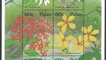 Auf der rechten Marke über das Wertzeichen des Zusammendruckes ist eine Kannenpflanze Nepenthes abgebildet. Es könnte sich entweder um eine Nepenthes alata oder eine Nepenthes mirabilis handeln. Auch hier sieht man dass die Kannenpflanzen in den tropischen Raum sehr verbreitet sind.
