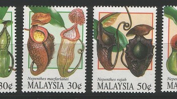 Heute begeben wir uns nach Thailand, ein exotisches Land mit vielen Fleischfressenden Pflanzen. Thailand gab im Jahr 1994 die ersten Marken mit Fleischfressenden Pflanzen als Motiv heraus. Diese Serie bestand aus 4 verschiedenen Marken wobei 3 Marken zu den besagten Motiven gehören. Es gab sie als Einzelmarken und als 4er-Block.
