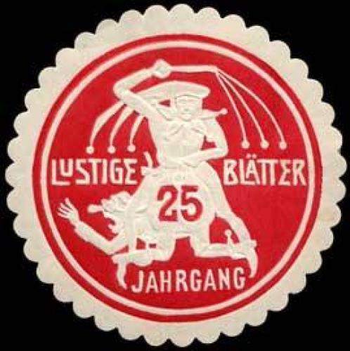 Auch Zeitschriften hatten manchmal eigene Siegelmarken. Hier wird jemand übers Knie gelegt. Die"Peitsche" sieht mir nach einer "Dreischwänzigen Katze" aus.