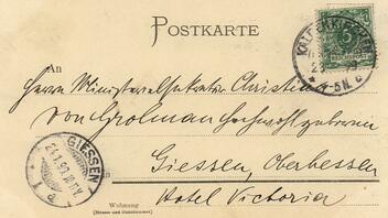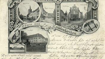 Litho Gruss aus Kaldenkirchen mit 6 Ansichten: Kehrstraße, Hochstraße, Kuh.-und Mühlenstraße, Hauptzollamt, Bahnhof und Altenhof, gelaufen 17.10.1897 mit KOS Kaldenkirchen Rheinland nach Wolfenbüttel b. Braunschweig.