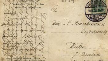 Am heutigen Sonntag mal wieder ein Sprung in ein anderes Album - diesmal eine Innenansicht aus dem Haus Maria Helferin - Pensionat der Schwestern U. L. Frau gelaufen 1913 nach Wetten bei Kevelaer -die Karte hat zwar Gebrauchs- und Altersspuren , ist aber trotzdem m.M. sammelwürdig und hat somit auch einen Platz im Album bekommen.