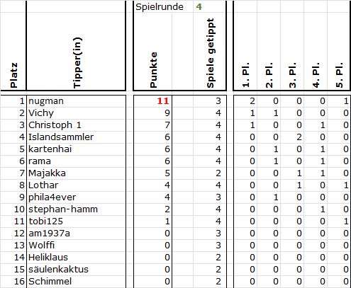 nach Spiel 4 stelle ich fest, Jens hat seine Hausaufgaben gemacht - und das Glück ist ihm hold ;)