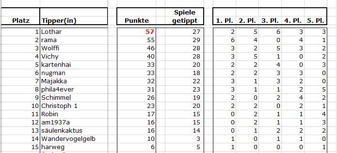 wollte mich auch mal mit der Auswertung einbringen, hoffe es ist alles richtig! Hab dann auch gleich das nächste Spiel angefügt. Ich hoffe es gefällt.