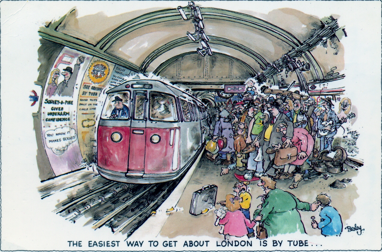Vorne ist jedoch die herrliche Ansicht. Der typische Anblick in einer U-Bahn-Station in England. Dazu steht unten noch der Spruch:
