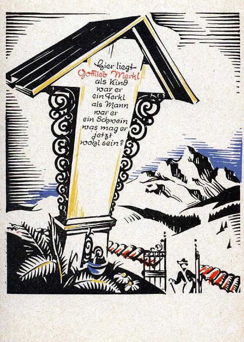 Für die Freunde des schwarzen Humors ein Marterlspruch: