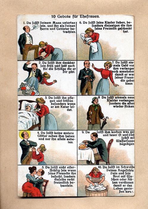 Eine Karte aus der Zeit, als Emanzipation noch ein Fremdwort war, man könnte sie fast als frauen-feindlich bezeichnen. :D