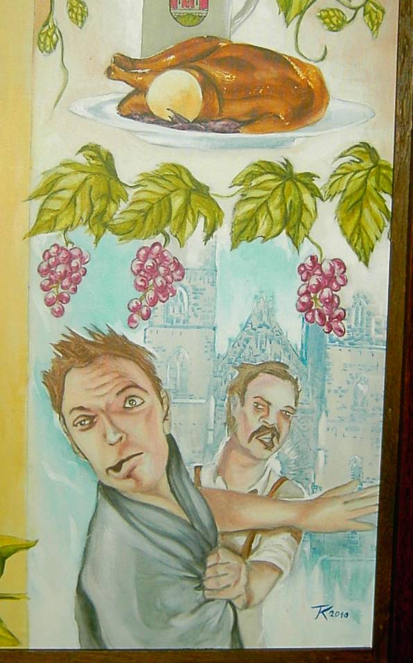 Dann kam es, wie es kommen musste: Es wurde langsam dunkler und wir mussten uns in beleuchtete Räume verziehen. Positiver Nebeneffekt: Es gab dann auch etwas zu Essen. Schäuferle mit Kneidl, wie es in der dortigen Amtssprache heisst. Dazu gab es nur eines zu sagen: L Ä Ä Ä Ä C K E R ! ! ! Das hat so ein kleiner „Bimbala vo´ Laff“ (eingeweihte Insider wissen, was damit gemeint ist) wirklich super hinbekommen. Jedenfalls satt sind wir alle geworden und ich habe keinen meckern hören. Nach dem Essen ging es weiter mit Philatelie und der Abend klang wunderschön aus, man sah nur zufriedene Gesichter. Das hat der grosse Bimbala vo´ Laff (*) wieder mal alles perfekt organisiert. ( (*) blöd nur, wenn norddeutsche Touris plötzlich mittelfränkisches Hintergrundwissen erhalten…)