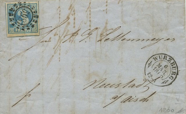 Ich wage jetzt direkt zu Platte 5 Thread zu gehen. Obwohl es immer eine kleine Zweifel gibt. Ich denke aber dass diese zwei Marken auf diesen Brief von Nürnberg nach Weilheim in Oberbayern von Juni 1862 eine sichere Platte 5 ist.