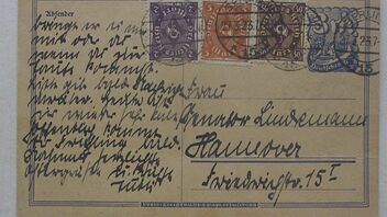 Ich möchte hier eine Karte zeigen vom 27.03.1923. Diese ist frankiert von Berlin nach Hannover mit 40 Mark auf einer Ganzsache zu 3 Mark und 3 weiteren Marken zu 2, 5 Mark einfarbig und einer 30 Mark zweifarbirg.
